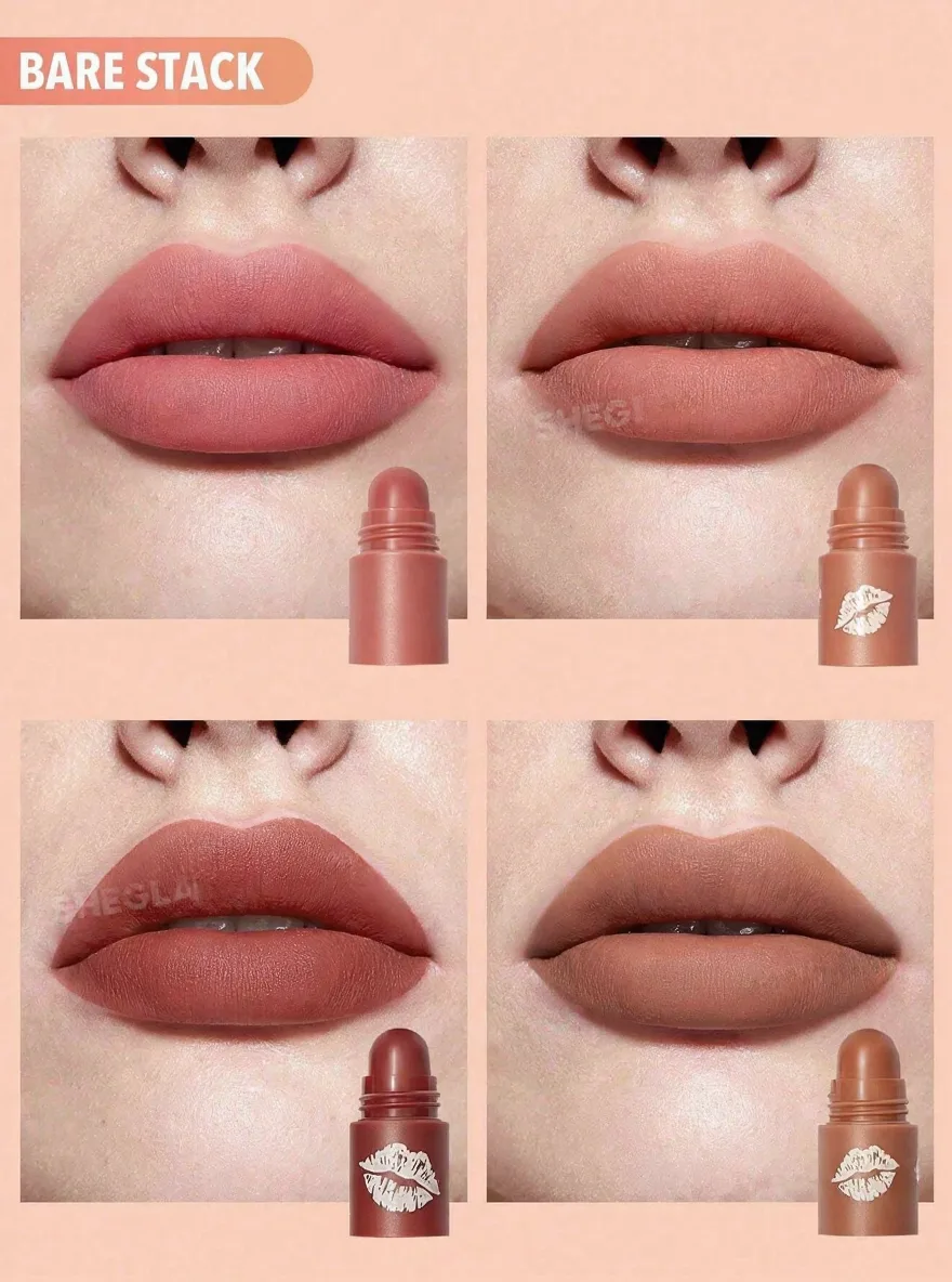 مدل bare stack شامل چهار سایه nude است: از rose nude ملایم تا mauve nude عمیق. ترکیب برای lookهای nude متنوع و طبیعی.
